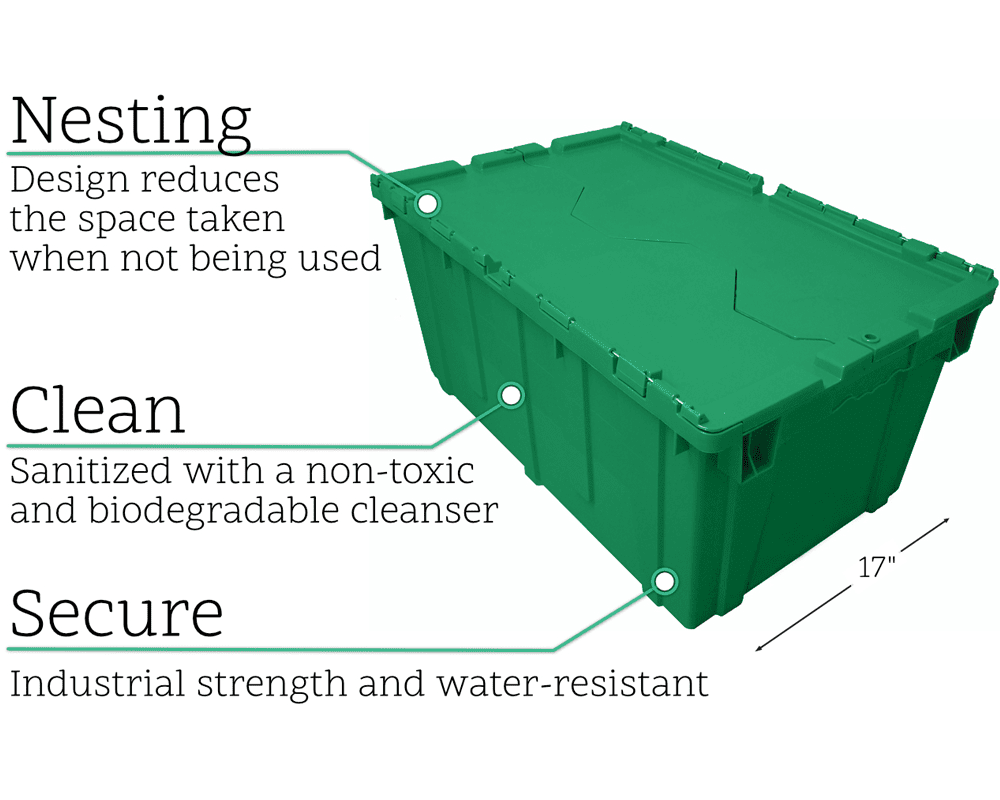 - 4-wheel dollies (don’t stack more than 4 bins on a dolly)